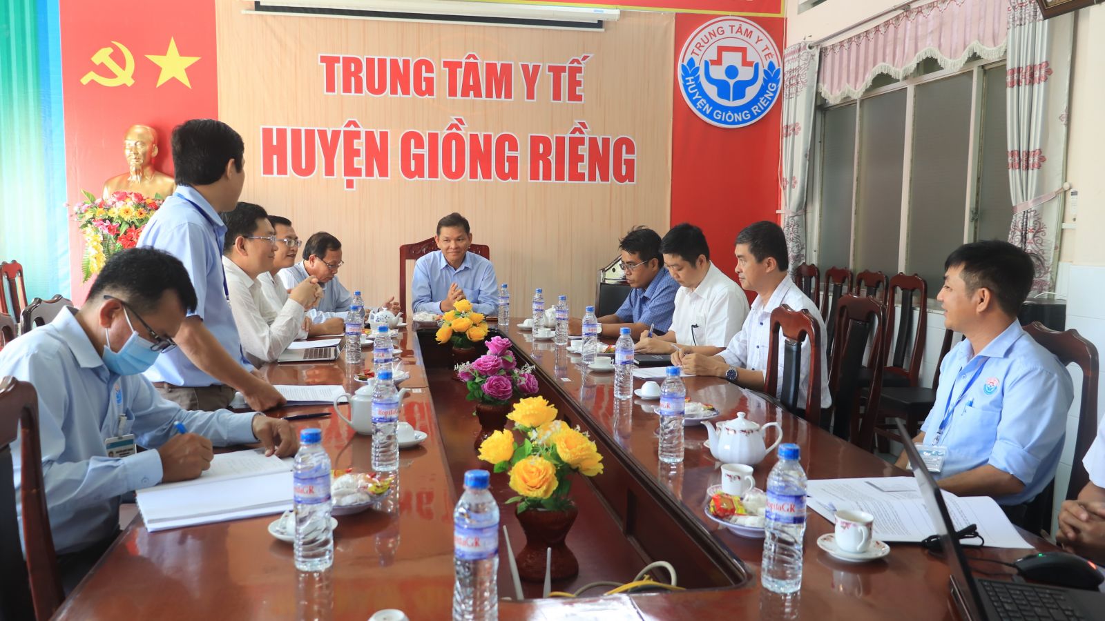 Buổi chuyển giao kỹ thuật có sự tham dự của BsCKII. Nguyễn Trúc Giang (Phó Giám đốc Sở Y tế Kiên Giang), Đại diện Phòng Kế hoạch nghiệp vụ Y – Dược Sở Y tế, Ban Giám đốc Trung tâm Y tế huyện Giồng Riềng, cùng lãnh đạo các khoa, phòng chức năng có liên quan.