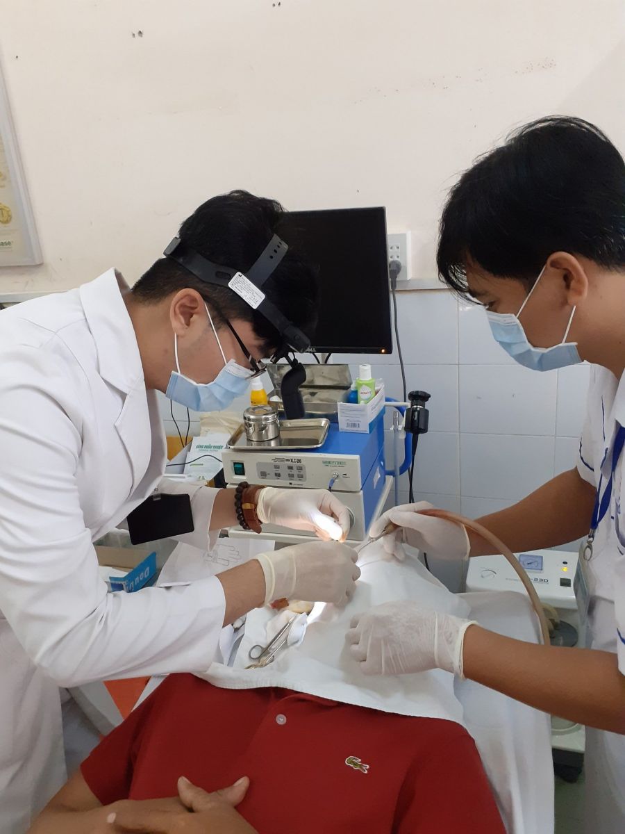 Ca phẫu thuật được thực hiện bởi Bác sĩ CKI. Nguyễn Hoàng Quý - Trưởng khoa Tai Mũi Họng và ekip mổ của Trung tâm Y tế huyện Giồng Riềng. Sau khoảng 01 giờ ca phẫu thuật đã thành công tốt đẹp. Bệnh nhân được chẩn đoán Viêm xoang mạn tính bên (T) do nấm - Khí hóa cuốn mũi giữa bên (T), vào viện với tình trạng chảy mũi hôi kéo dài, nặng mặt (T) kèm đau đầu nhiều vùng trán. Sau phẫu thuật, sức khỏe của người bệnh ổn định, được chăm sóc hố mổ và theo dõi sát sau phẫu thuật hằng ngày, hiện tại người bệnh đã xuất viện trong tình trạng các triệu chứng khó chịu được cải thiện rõ rệt.